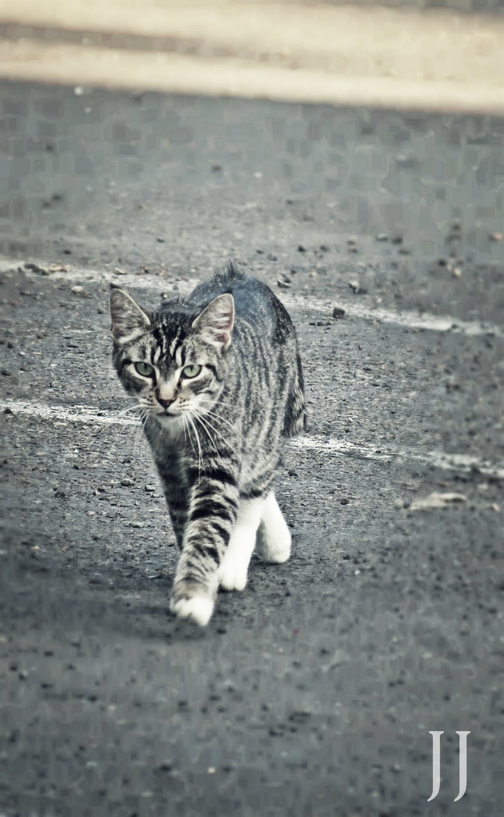 Young white with tabby- I haven't seen it since I took its photo in her window.